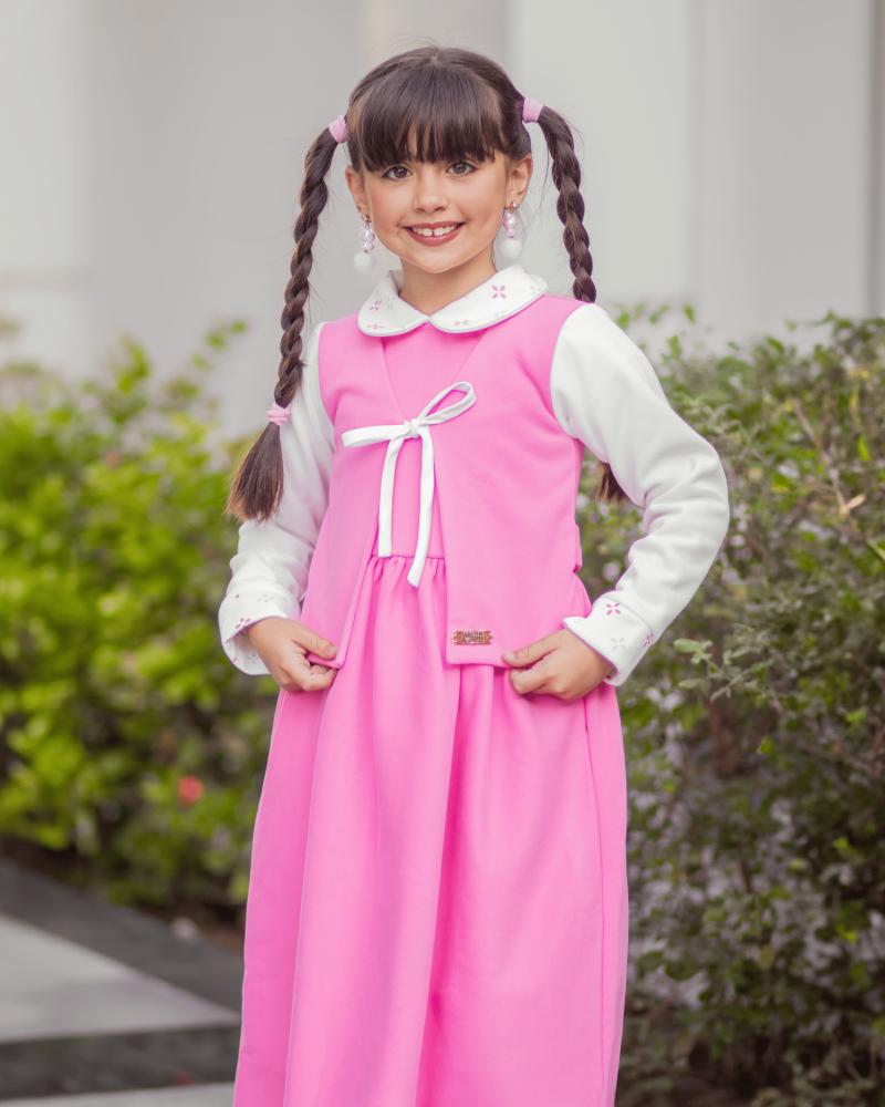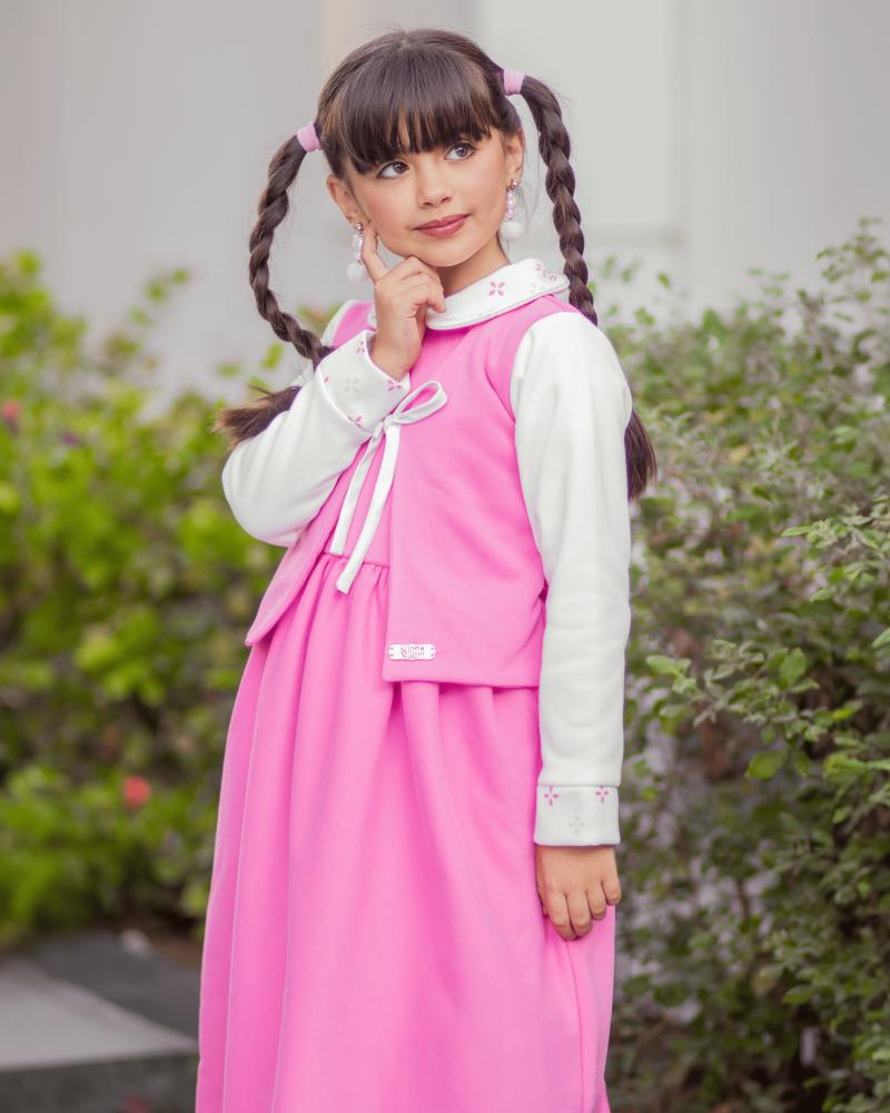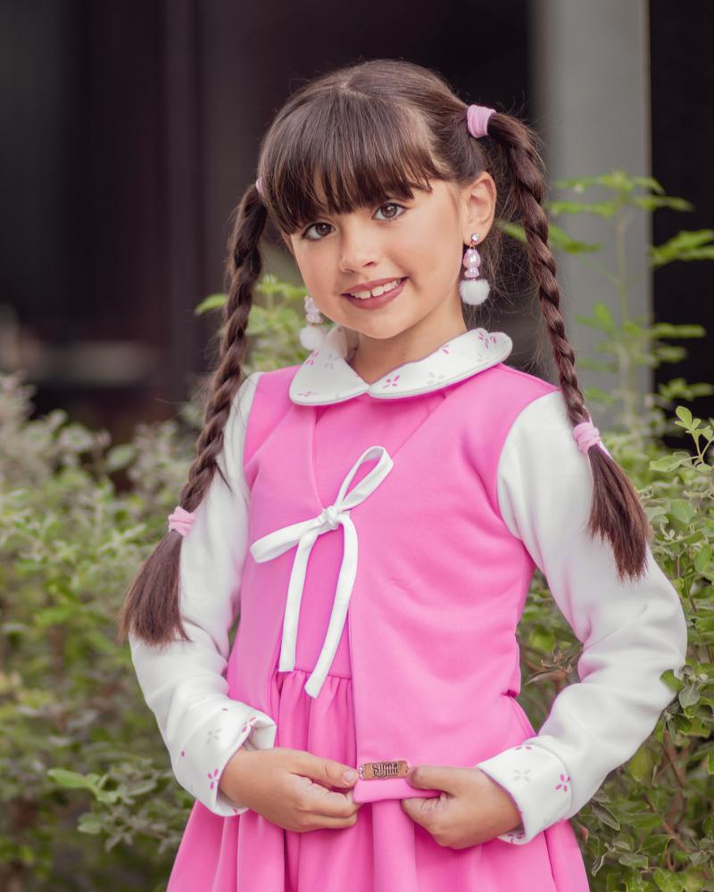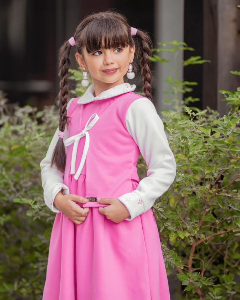 تميّزي بإطلالة مدرسية أنيقة ودافئة لطفلتك مع هذا المريول الشتوي الوردي من براند سيرما من تصميم المصممة أميرة العتيبي، الذي يجمع بين العملية والفخامة بتفاصيل طفولية ناعمة تعكس أناقة التصميم السعودي العصري.