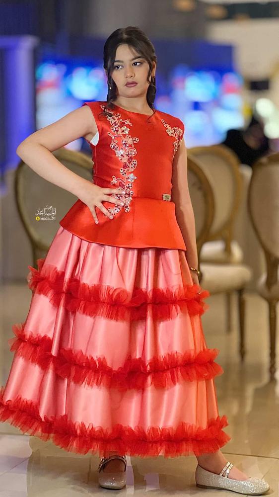 فستان رائع بتصميم عصري وأنيق، يتميز باللون الأحمر الزاهي مع تطريزات دقيقة تضفي لمسة من الفخامة. التنورة الواسعة المزينة بالتول الأحمر تضيف حركة وحيوية، مثالي للحفلات الخاصة يجمع بين الراحة والأناقة ليجعل صغيرتك تتألق في كل مناسبة